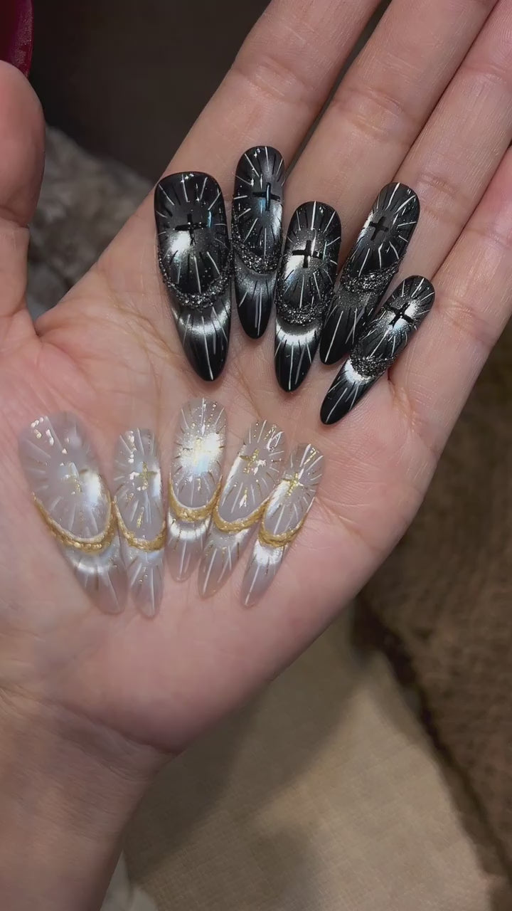 The Mystic Aura & Holy Glow Combo brings together two of the most captivating collections — bold, magnetic elegance and dreamy holographic shine — designed to inspire every nail artist’s imagination. ✨
